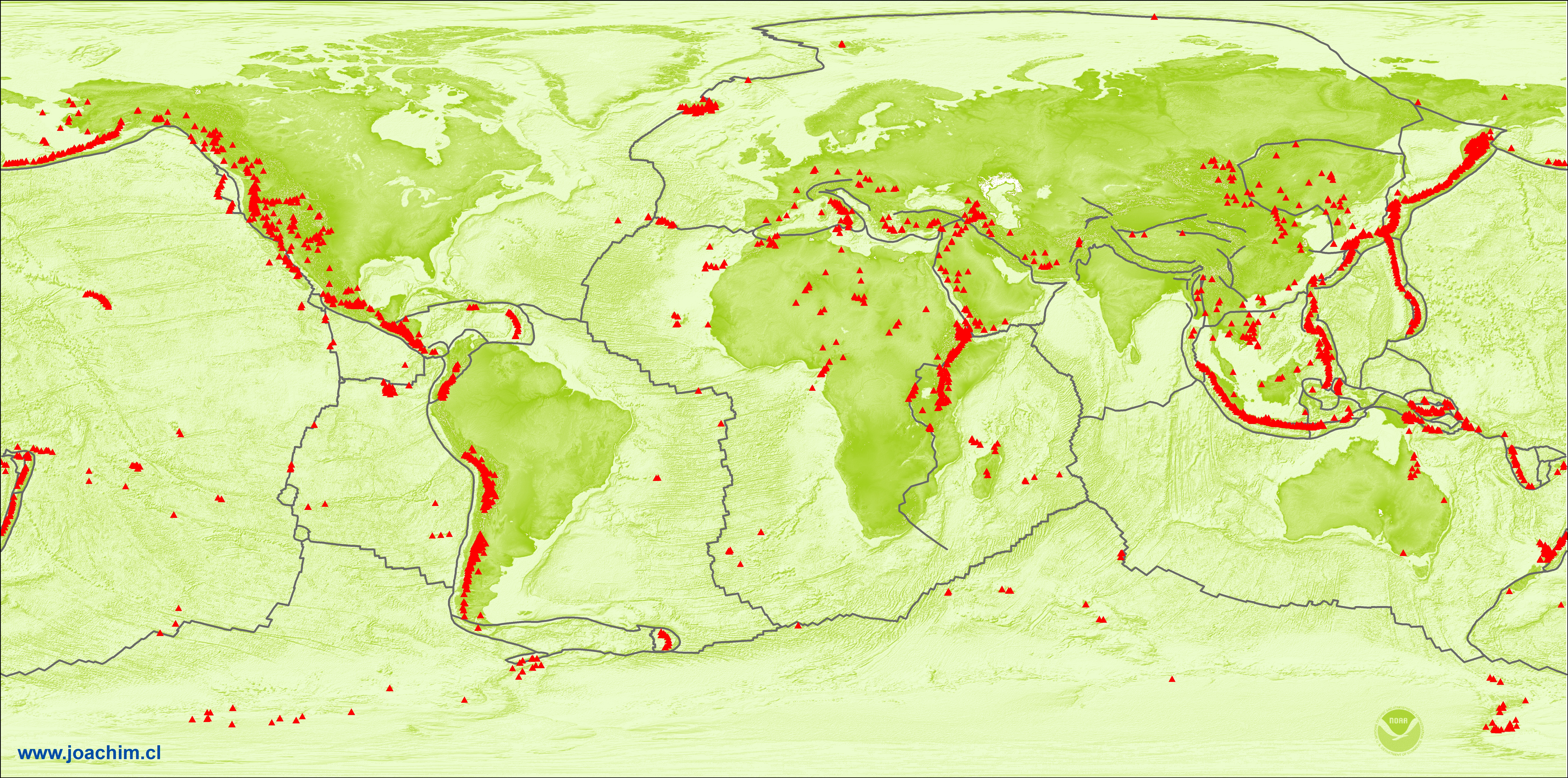 La mayoría de los epicentros de los sismos y la mayoría de los volcanes activos de la tierra se relaciones con los límites de las placas tectónicas: