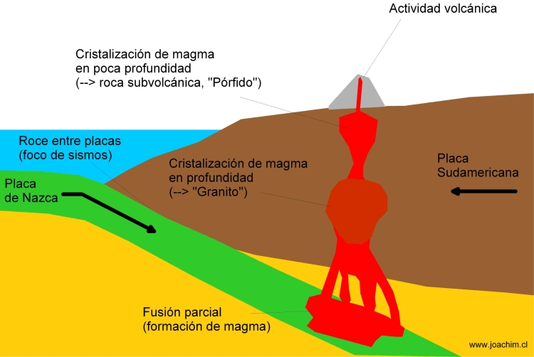 La actividad magmática a lo largo de una zona de subducción, a la vez es responsable para la formación de yacimientos metálicos. La riqueza minera de Chile, con sus yacimientos de Cobre, Plata, Oro, Molibdeno y Hierro, se debe a este hecho.