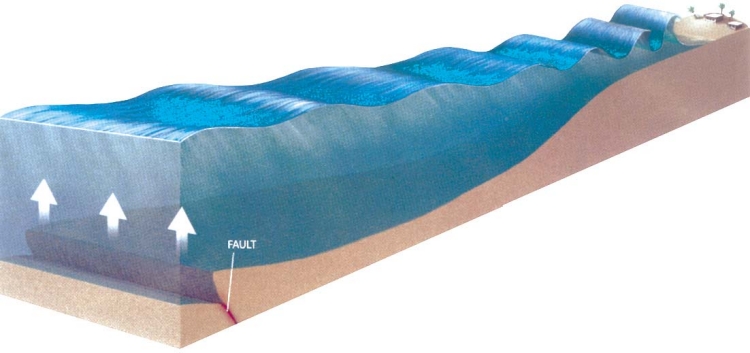 por todo un océano, causando daños en zonas muy lejanas del epicentro.