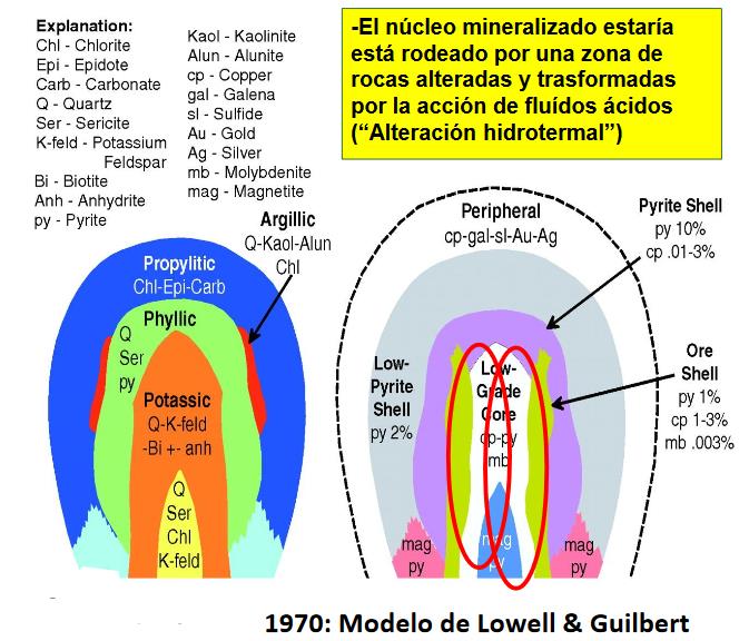 Las alteraciones forman zonas ("halos") alrededor del centro de la alteración que muchas veces se puede identificar claramente en terreno: